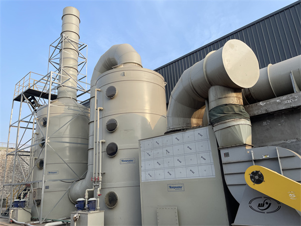 二級和一級噴嘴的密度、噴液壓力和吸收酸性(堿性)氣體的濃度范圍都不一樣。噴淋段和填料段的兩相接觸過程也是傳熱和傳質的過程。并控制空塔的流速和停留時間,以保證整個過程的穩定。排氣處理塔體上部為除霧段,氣體中的吸收液霧滴在此被清除,經過處理的潔凈空氣由廢氣凈化塔上的排氣管排放到大氣。