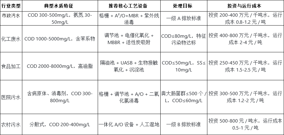 不同行業、不同規模的排污單位對污水處理環保設備的需求差異顯著,需精準匹配場景需求: