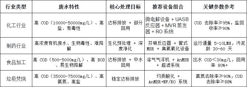 二、高濃度廢水處理設(shè)備選型核心邏輯與行業(yè)適配
