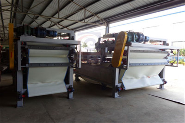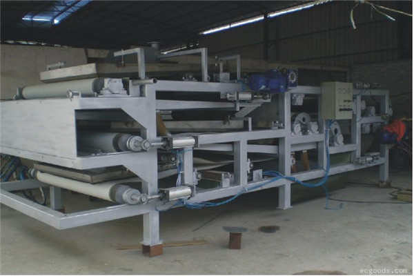 帶式壓濾機,即通過皮帶擠壓,兩層濾布夾住泥漿,然后通過設備的濃縮段過濾水,再通過設備“S”區的滾筒對泥漿進行壓榨脫水。