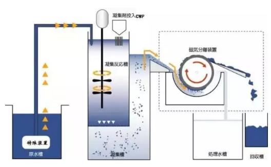 磁選技術是近年來發展起來的一種新型水處理技術,它利用廢水中雜質顆粒的磁性進行分離。對水中非磁性或弱磁性顆粒,采用磁接種技術可以使其具有磁性。在廢水處理中,磁選技術有三種方法:直接磁選、間接磁選和微生物-磁選。