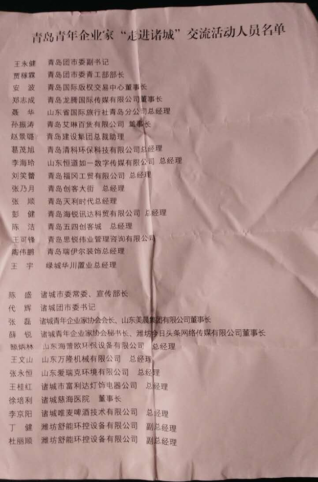 2016年8月19日,由青島團市委與諸城宣傳部、團市委、諸城青年企業家協會聯合發起的“青島青年企業家‘走進諸城’交流活動”在諸城舉行。本活動不但聯合了青島青年企業家與諸城青商…